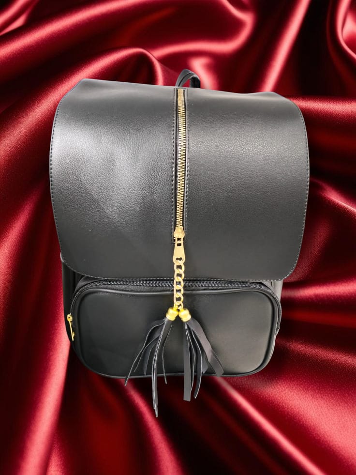 Maleta elegante con acabado mate, diseño en cremalleras y broches dorados.