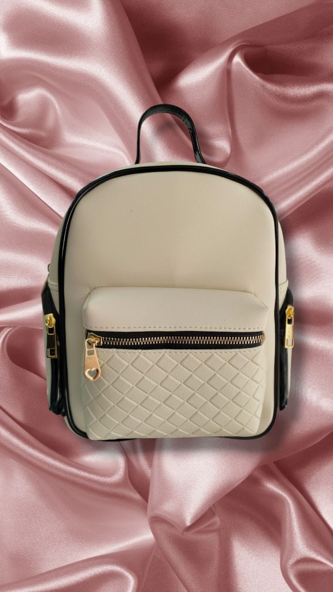 Mochilita con detalles dorados y elegante estructura.